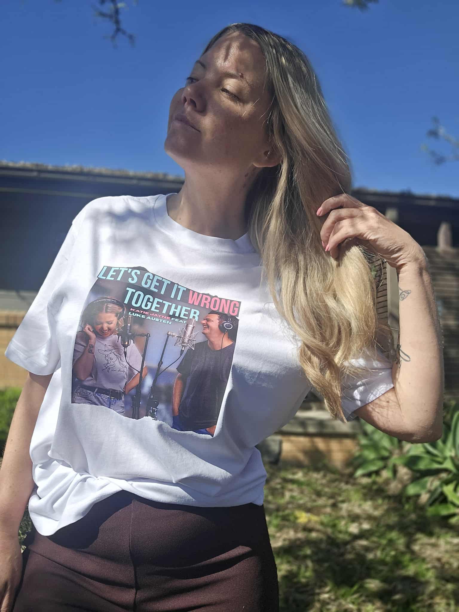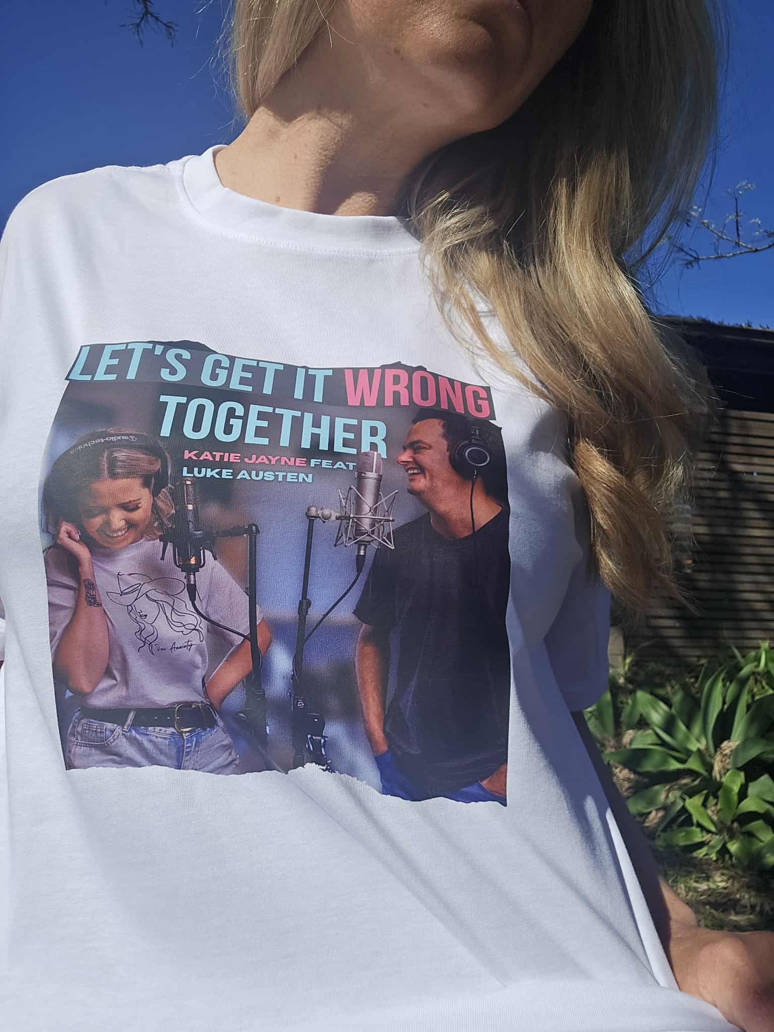 Celebrate the release of Katie Jayne’s new single “Let’s Get It Wrong Together” (feat. Luke Austen) with this exclusive unisex t-shirt.
